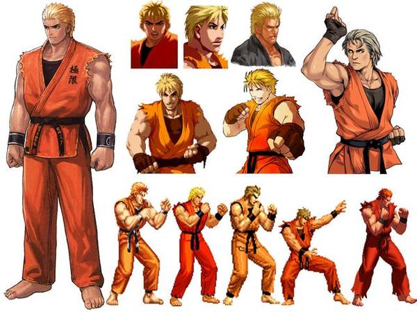 龙虎之拳中的富二代、拳皇前期的公子哥、拳皇中期的格斗家、拳皇后期的胡子大叔