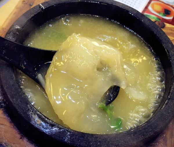 他家出彩之处在于鱼翅的汤底,用鱼翅、老母鸡和花胶文火熬制,非常粘口。