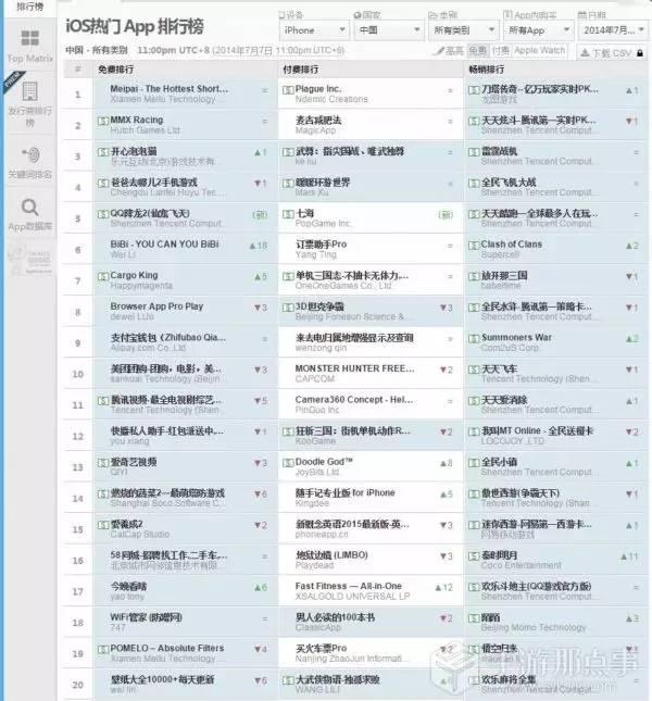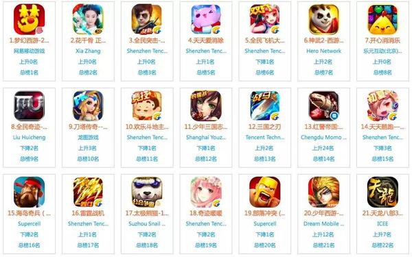 而回顾上年的同一天时间(7月7日),共有包括《刀塔传奇》、《全民水浒》等7款游戏在畅销榜的Top20的位置,占35%。